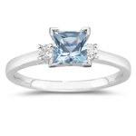 This startling Aquamarine Ring displays an AA quality princess-cut Aquamarine, accented with two Diamonds prong set in Platinum. Approximate Gemstone Weight: 1.05 Carats. Approximate Diamond Weight: 0.10 Carats. An elite ring designed to flatter your hand.,METAL:Platinum,ACTUAL METAL:Platinum,NUMBER OF DIAMONDS:2,SHAPE:Round,MINIMUM COLOR:H,MINIMUM CLARITY:SI,MINIMUM CARAT TOTAL WEIGHT:0.10,SETTING STYLE:Prong Setting,GEMSTONE:Aquamarine,SHAPE:Princess,AVERAGE COLOR:Light Blue,AVERAGE QUALITY:AA,MINIMUM CARAT TOTAL WEIGHT:1.05,GEMSTONE DIMENSIONS:6 mm,SETTING STYLE:Prong Setting,NUMBER OF STONES:1,COLOR:Blue- White,PRODUCT TYPE:Solitaire Ring,GENDER:Womens,MATERIAL:Gemstone- White Diamond